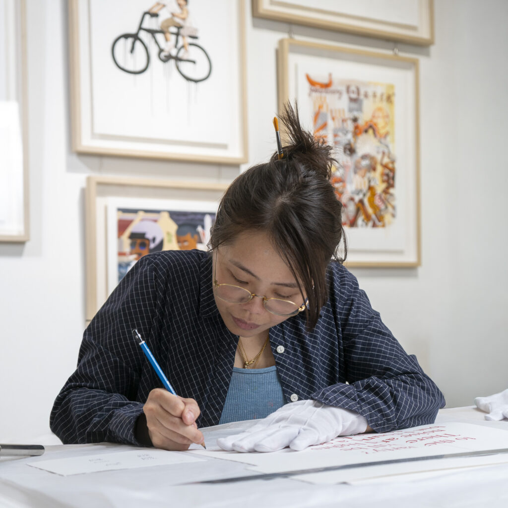 Trina Teoh is a writer and artist. Her practice explores the hybridity of text and visual art. She began her career as a street artist, painting prose throughout George Town and Kuala Lumpur. Her debut exhibition, Valley Deep Into You, showcased her text-based work in forms of sculptures, installations, and prints, broadening her work from the streets into a gallery space.