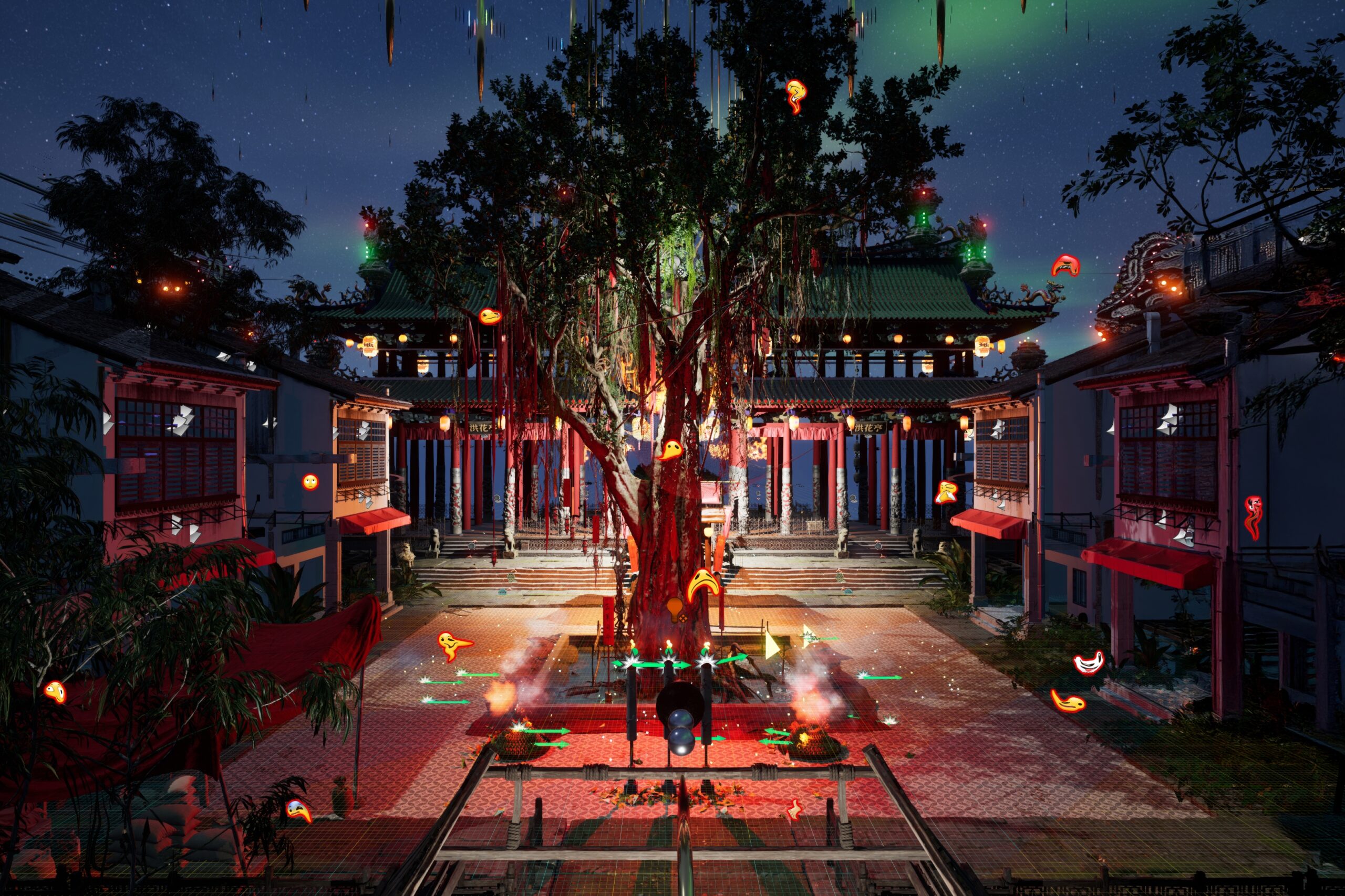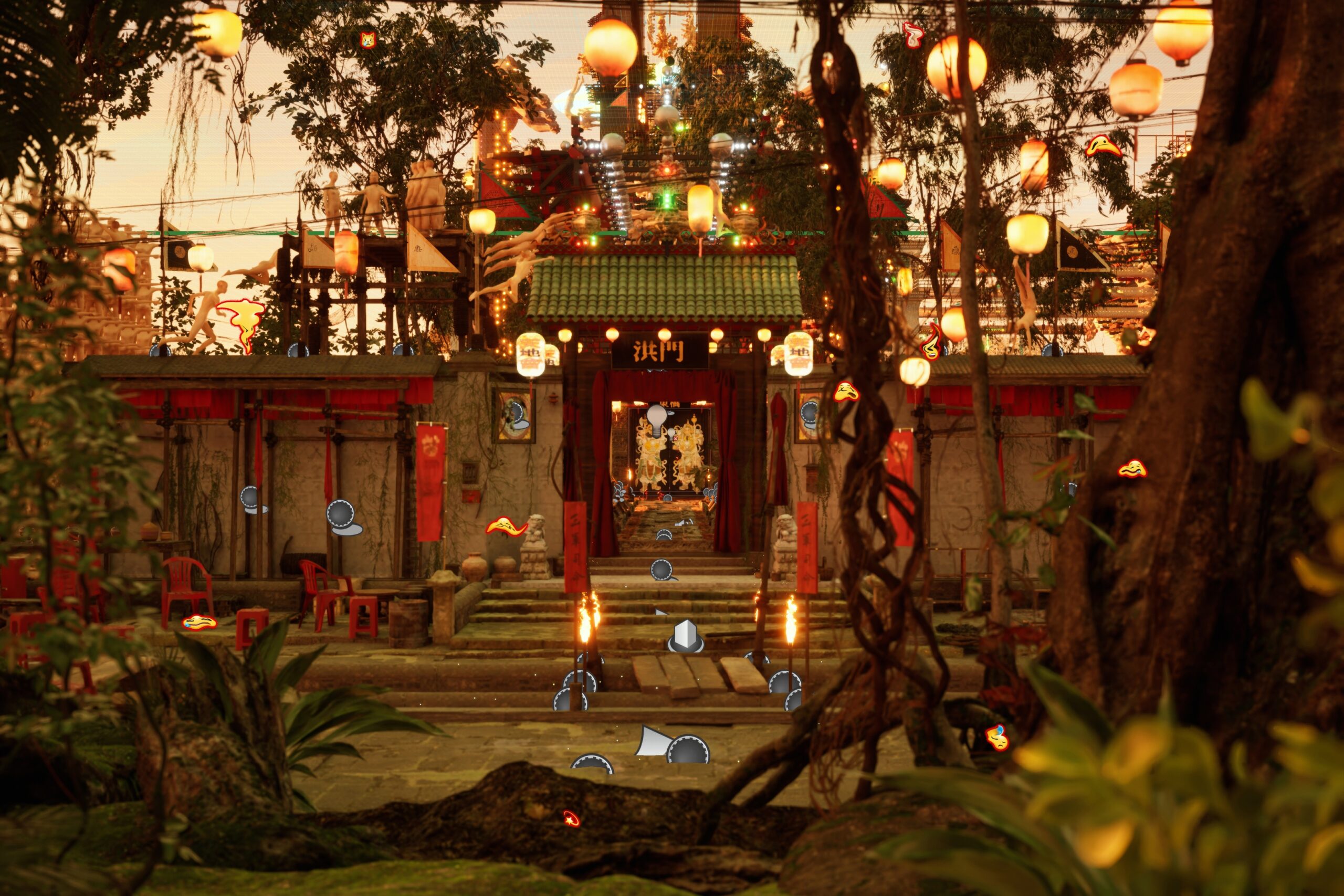 The game The City of Willows (2025) reimagines the rituals of 19th-century Chinese secret societies (Triads) in the Malay archipelago. Players embark on a mythic journey through Southeast Asian scenes from durian stalls to Penang’s Kek Lok Si Temple, searching for the symbolic sanctuary, the “City of Willows”. A destination that functions as a post-apocalyptic haven for belonging and community.